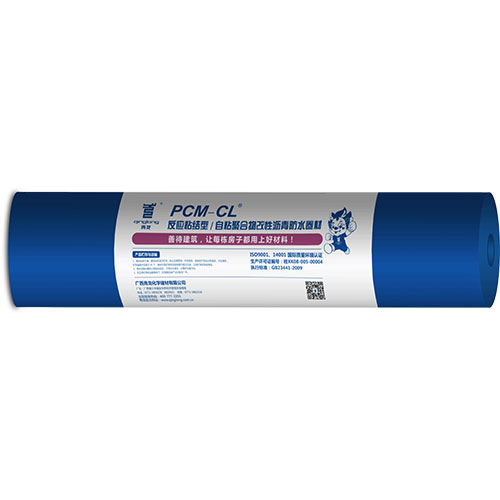 PCM-CL反應粘結型自粘聚合物改性瀝青防水卷材有兩種類型,一種是由合成橡膠和樹脂改性瀝青中加入特殊改性劑,聚酯胎為胎體,聚乙烯膜為表面材料或無膜(雙面自粘),采用硅油防粘隔離膜制成的:另一種是由PET聚酯膜(鍍鋁、鋁塑復合)、自粘橡膠瀝青料、硅油防粘隔離膜組成。