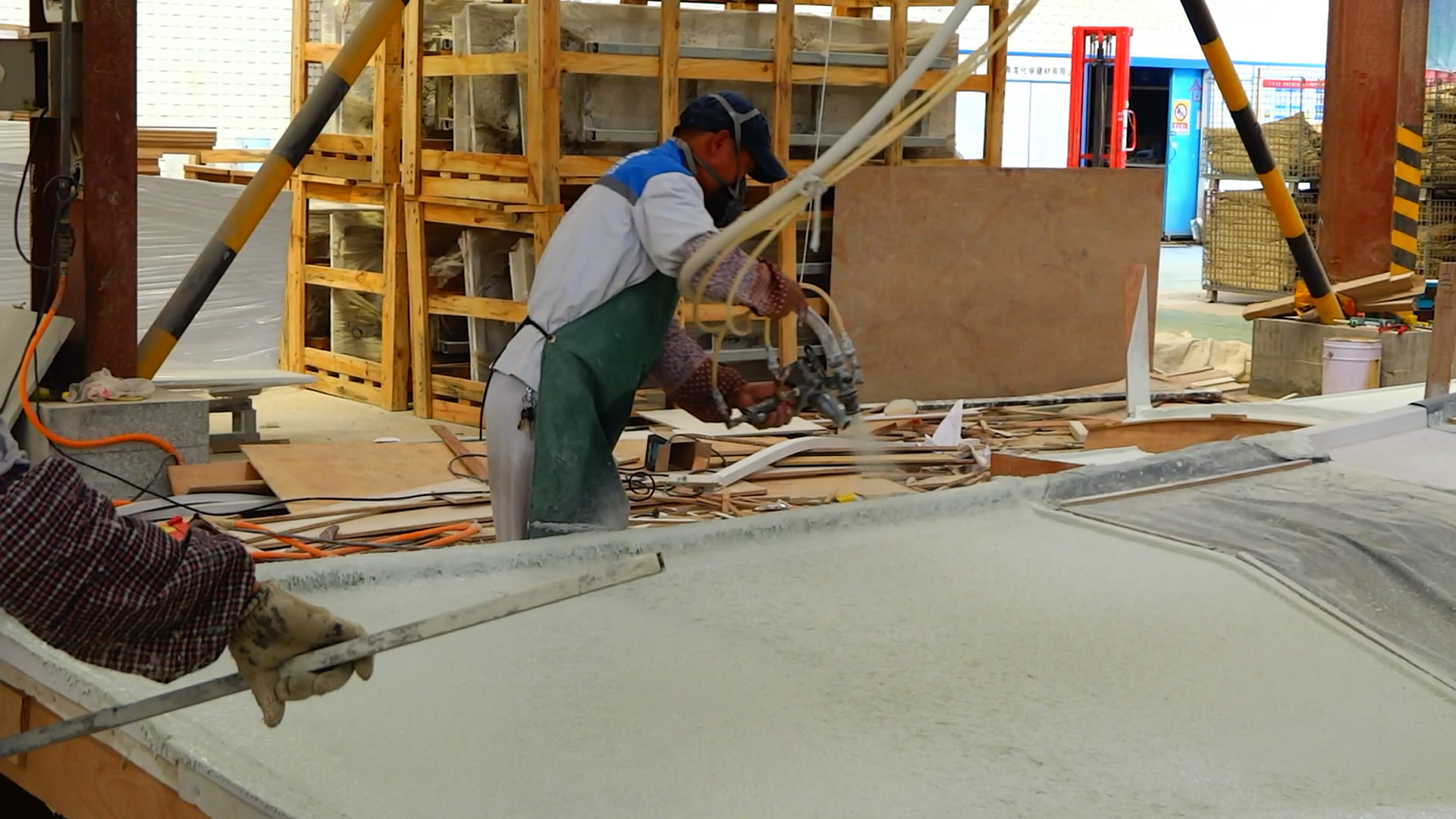 青龍公司作為國內(nèi)GRC領(lǐng)域的知名企業(yè),承接了新媒體中心三座主體結(jié)構(gòu)的雙曲面外墻板項目。由于所有的面板沒有一片完全相同,不僅要經(jīng)受高空風雨的侵蝕,相鄰兩塊更要緊密榫合,天衣無縫,并在整體上形成流線性美感,因此需要制作大量的模具,工程極為繁瑣。但青龍GRC團隊克服重重困難,從圖紙深化設計、彩色GRC選材、造型產(chǎn)品生產(chǎn)到安裝施工等一系列工序中都做到極致,讓甲方和監(jiān)理都非常滿意。