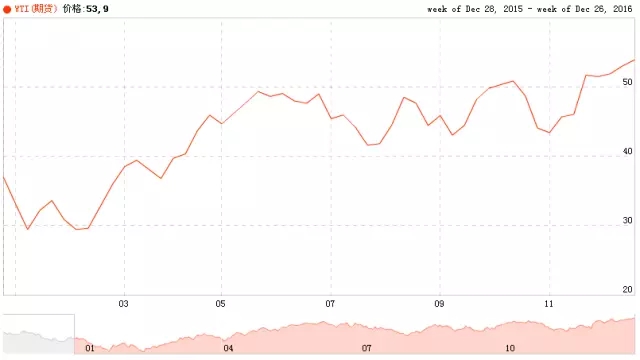 數(shù)據(jù)顯示,11月上旬開(kāi)始,WTI從11月初的45.69美元/桶持續(xù)拉升至11月底的51.68美元/桶。